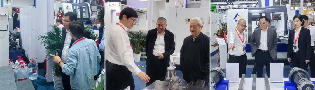 集團展位吸引了眾多行業(yè)專(zhuān)家、企業(yè)代表和專(zhuān)業(yè)觀(guān)眾駐足觀(guān)展交流。國家工業(yè)和信息化部裝備工業(yè)一司副司長(cháng)汪宏,工業(yè)母機創(chuàng )新院專(zhuān)家咨詢(xún)委主任、原工信部裝備一司一級巡視員苗長(cháng)興,國家重大技術(shù)裝備專(zhuān)家委員會(huì )委員、原集團副院長(cháng)屈賢明,中國機械制造工藝協(xié)會(huì )理事長(cháng)、原集團總經(jīng)理王西峰分別蒞臨展位,充分肯定了集團在高端精密機床及核心功能部件方面的成績(jì),希望集團加快研發(fā)步伐,創(chuàng )新對接形式,深入推進(jìn)工業(yè)母機在攻關(guān)、制造、應用上實(shí)現全鏈條突圍、高質(zhì)量發(fā)展,在國家現代化產(chǎn)業(yè)體系、產(chǎn)業(yè)發(fā)展韌性和安全、科技創(chuàng )新體系中發(fā)揮更大作用。