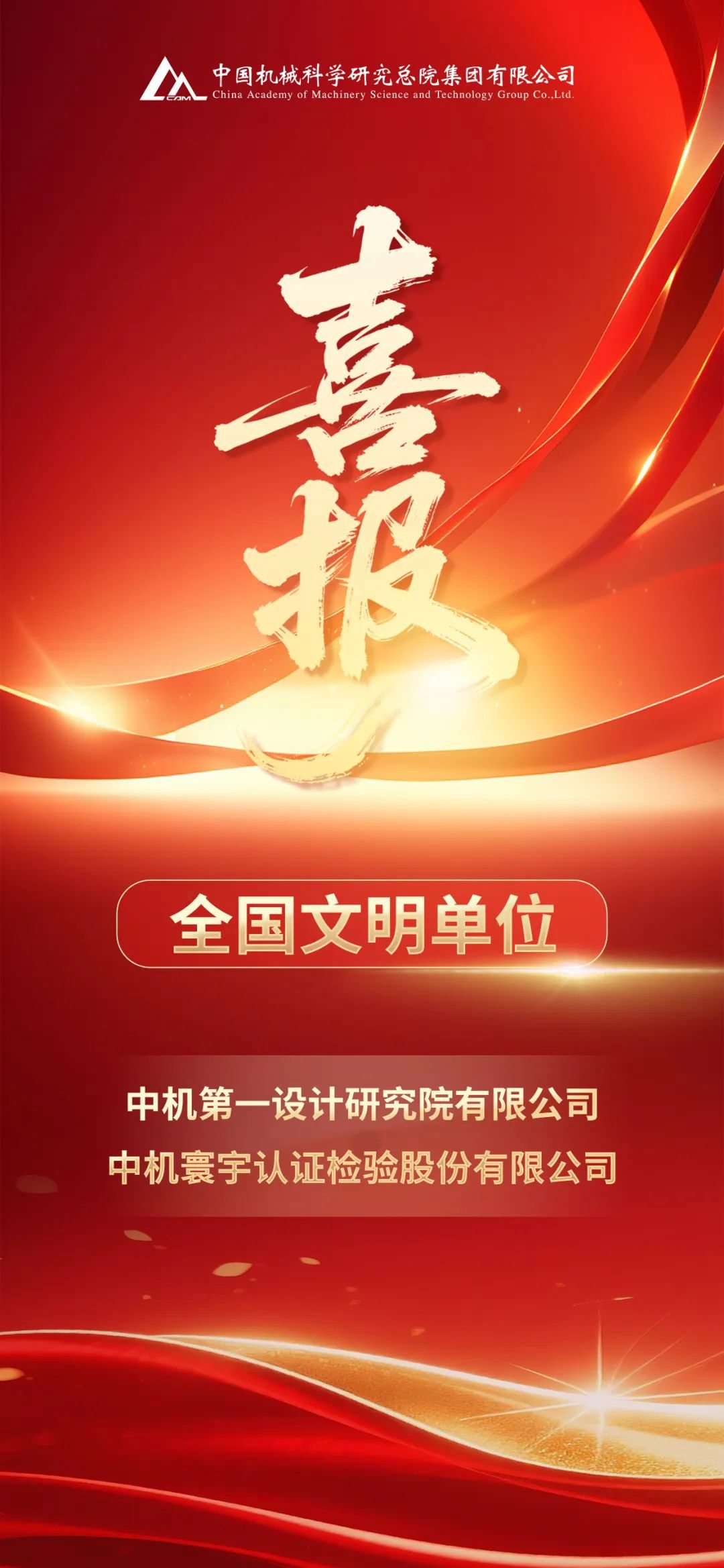 全國精神文明建設表彰大會(huì )5月23日在京召開(kāi)。會(huì )上傳達習近平總書(shū)記近日對精神文明建設工作作出的重要指示,并宣讀表彰決定。中國機械總院中機第一設計研究院有限公司、中機寰宇認證檢驗股份有限公司2家單位被授予第七屆“全國文明單位”榮譽(yù)稱(chēng)號。